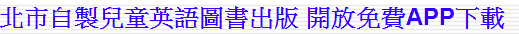 另為增進學生行動學習之移動力,本年度更加入配合圖文朗讀的APK電子書版本,透過平板電腦或智慧型手機在APP Store 或 Google Play 輸入「臺北市兒童英文圖書」即可免費下載,提供學生自主聽讀學習,並增加互動功能及自製賀卡小遊戲,讓英語閱讀增加更多樂趣,達到無邊界學習目標。