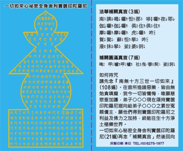 一切如來心秘密全身舍利寶篋(ㄑㄧㄝˋ)印陀羅尼(梵(ㄈㄢˋ)音版)