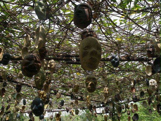 走入醉陶,映入眼簾的是掛著一張張陶製面具的瓜棚,在這一千多張「人海」中,絕對找不到表情相同的臉,依照王龍德的規矩,如果找到一樣的,就讓遊客免費帶回家。看到這些臉孔,不禁令人想到兵馬俑的臉,沒有一個是一樣的,各種表情臉,就像芸芸眾生中的你我一樣,我努力的尋找,試著找到那張屬於我的臉。