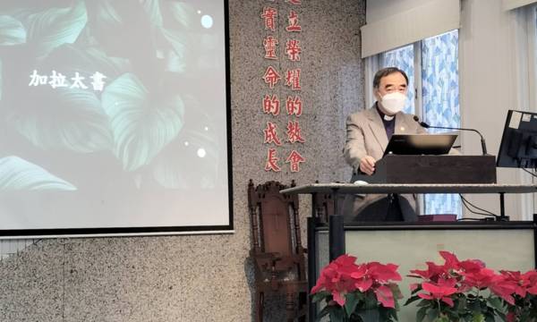 本次主題是「加拉太書」,陳牧師說:「這是最早論述外邦人信主的書信。」書中探討外邦人須先守律法才能得救嗎?陳牧師說:「我們要分辦律法與福音的不同,卻不可分割來講,因為只談律法不談福音,或只談福音不談律法,都會引來不必要的分歧與誤解。」