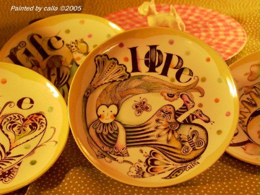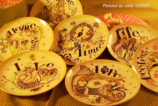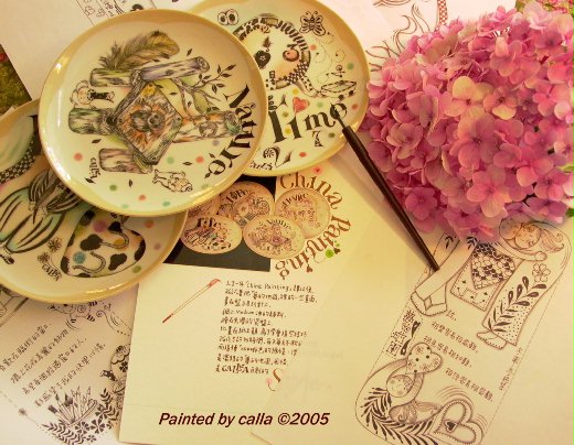 每天都在翻弄那些圖稿,很自然的就把那些圖繪在小盤上!