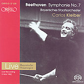 現在樂迷們有福了。Orfeo唱片終於發行第7號的CD。這是與超級名演第4號同一次音樂會的錄音,因此其氣氛當然與第4號相同。其演奏只能說是強烈。試聽第3樂章急板,那突突逼人的氣勢,聽得使人喘不過氣。克萊伯表現毫不含糊而強烈嚴峻的音響,給各音部雄辯角色的魔術,只有長期合作的夥伴巴伐利亞國家管弦樂團,才能把音樂提升到這麼驚人的境界。在這裡,管弦樂團成為有機的整體,在終樂章,已像是一隻身段柔軟的野獸,跳躍猛進。