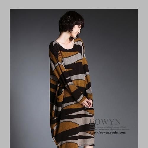 實拍胖MM大碼裝連衣裙歐美風中長款寬松針織印花毛衣裙紅色/卡其色/M/L ![]() |