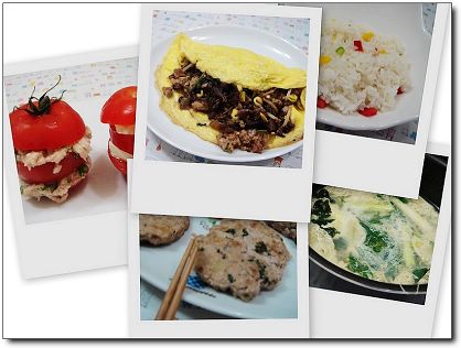 營養美味的漢堡肉,從配角變身主角當主菜;色彩豐富的彩椒飯,漂亮又有奶油香;料多實在的黑木耳蛋包,健康滿點;清爽的番茄和濃濃的鮪魚或起司都很對味;香菜蔥白湯,簡單易做,是冷天氣的趨寒暖湯;百分百新鮮番茄製成的可果美番茄汁加清涼的啤酒,自然又好喝喔。