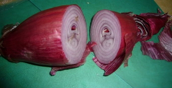 現紀錄如下:買一顆大顆一點的洋蔥,剝掉外層黃皮,露出白球的形狀,在尖的一頭切下一小角,放於容器或盤子裡,不必加水,洋蔥會散發一種分子,可淨化室內空氣,並達到殺菌作用,直到洋蔥長鬚,若覺得不好看可再換一顆。