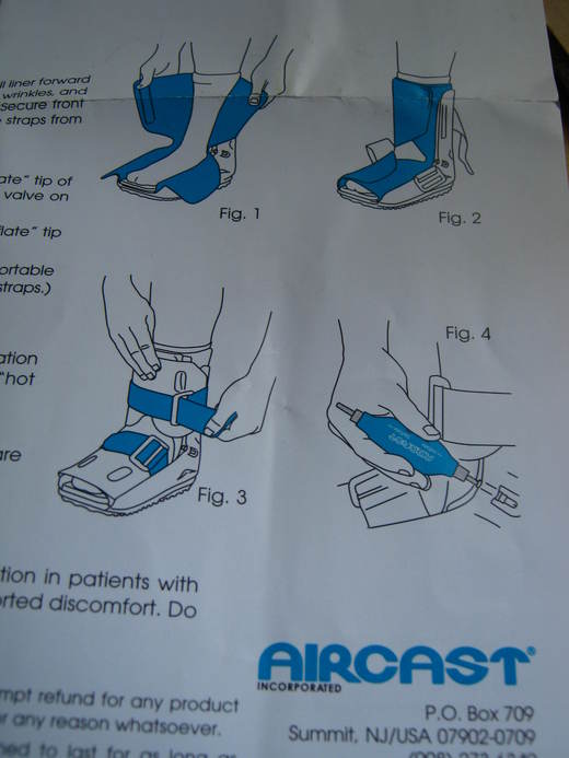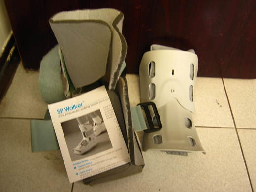 這雙護具是跌倒左腳腳踝脛.腓骨骨折,軔帶斷裂時,骨科醫師建議使用:手術後.免打石膏.復健用的.如此腳比較舒服.傷口癒合後可以泡腳洗腳幫助血循環恢復迅速!