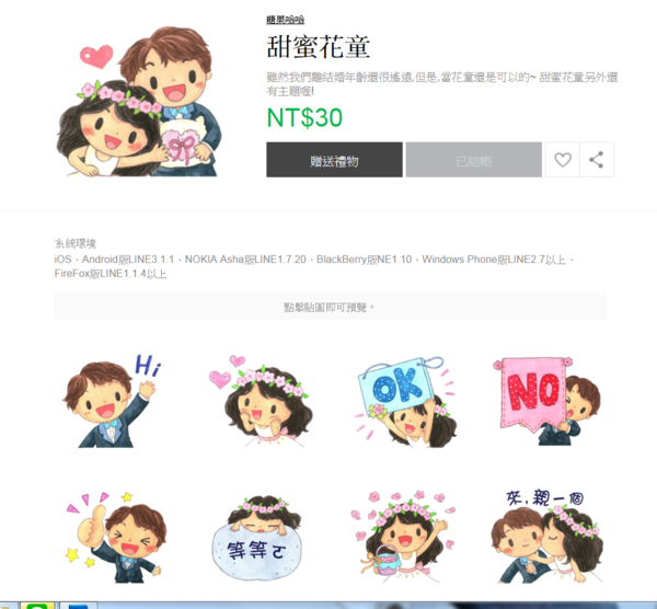LINE--甜蜜花童貼圖上架了