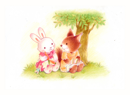 小白兔和她的好朋友小松鼠一起去野餐