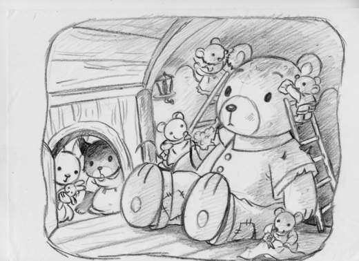 小老鼠打算把大熊布偶整理起來