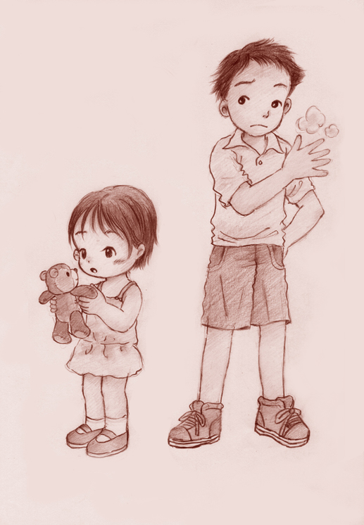 雖然小了哥哥7歲.但總是爬到哥哥頭上...