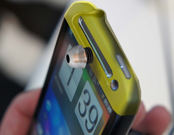 我只是要打電話時聽的清楚,並不要聽音樂,一定要拉這麼長的線嗎?如果那條線只夠從耳機孔到耳朵的長度,不就不會糾結了嗎?譬如在手機聽筒的地方套上一個裝置,上有一具耳機功能的乳突物,以平頭插銷插入耳機孔。電話來時拿起手機往耳朵裡一塞就可以了,話筒部份並不需要,因為我是拿著手機講話,打完了耳機也不必撤除,直接可以收合。