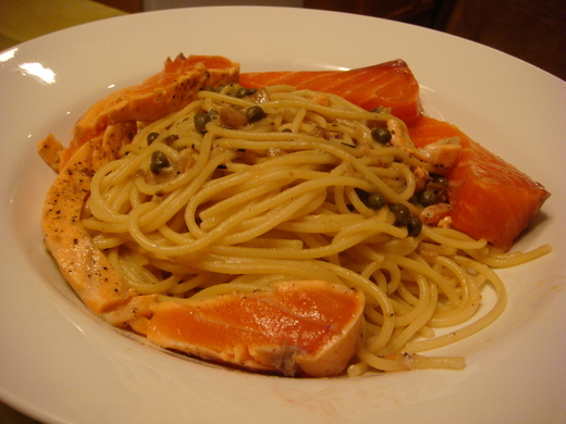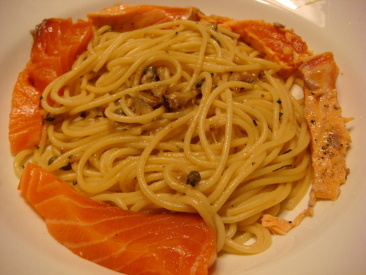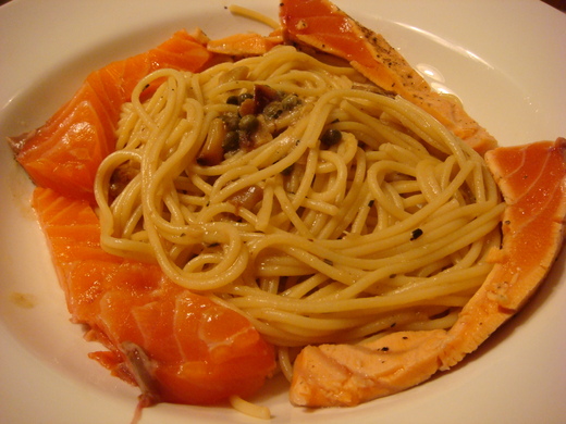 鮭魚生魚片烤蒜頭義大利麵Salmon Sashimi Roast Garlic Rosemary Pasta