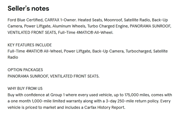這是賣家的說明:通風座椅、全景天窗,這些每天會用到的東西,才是真正拉開「同樣叫 C300」之間差距的原因。