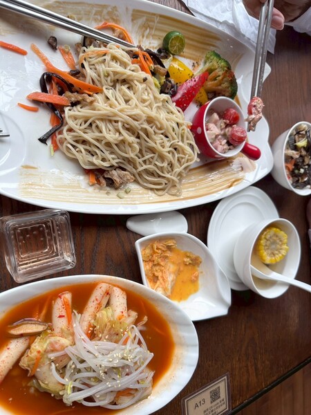 餐廳旁有很大的免費停車場。峨眉湖有完整的環湖步道,走走很棒。