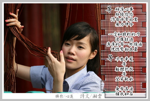 在我們的生命中,總會遇見一些人,而那些人是你還來不及熟識,就已經匆匆離開的。有時候你想抓住一點東西,然後你會發現,這一切都是枉然,因為該離開的時候沒有人會留下來,而該留下來的時候,離開的就是你自己。呼吸著思念 細嘗空間的無言 靜聽回憶 等 ~ 一種藝術