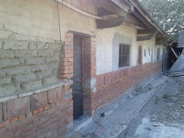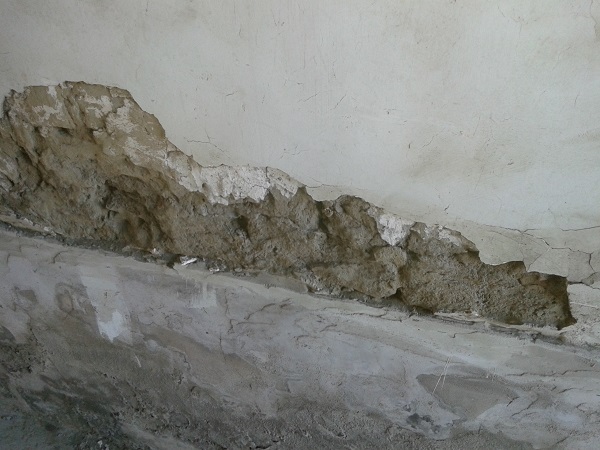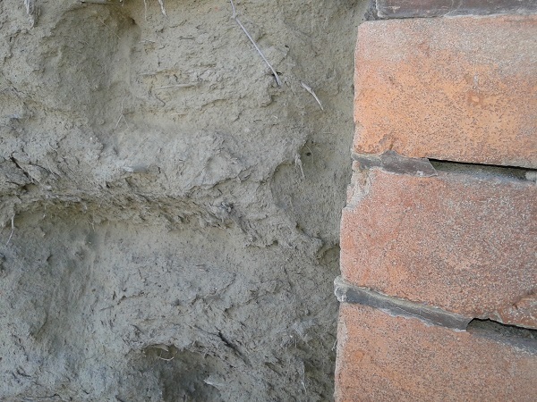一層薄薄的水泥cover在斑駁的土牆上,裡面乾燥的土。