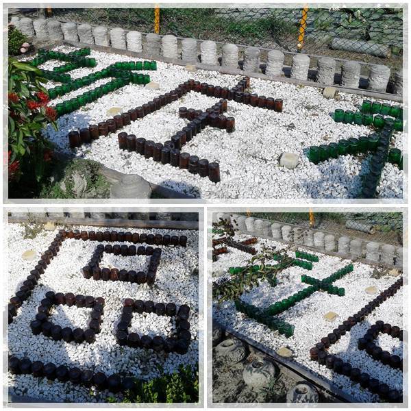 用玻璃瓶排列的"新庄社區"