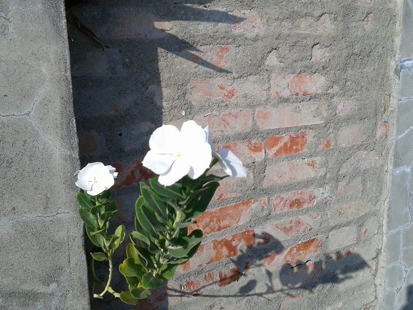 在閒逛舊址之餘,突然間發現頹廢的牆縫間,綻放著搖曳生姿的小白花