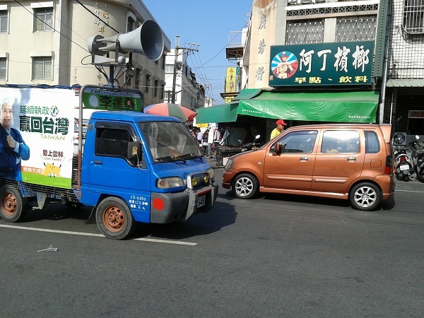 競選廣告車穿梭在巷弄之間,讓小鎮更加活潑了