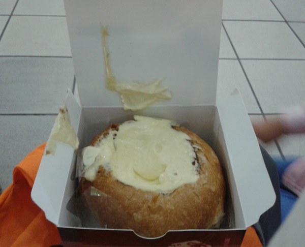 拿出剛才在崙背名店千巧谷買的"焦糖布蕾堡"來吃