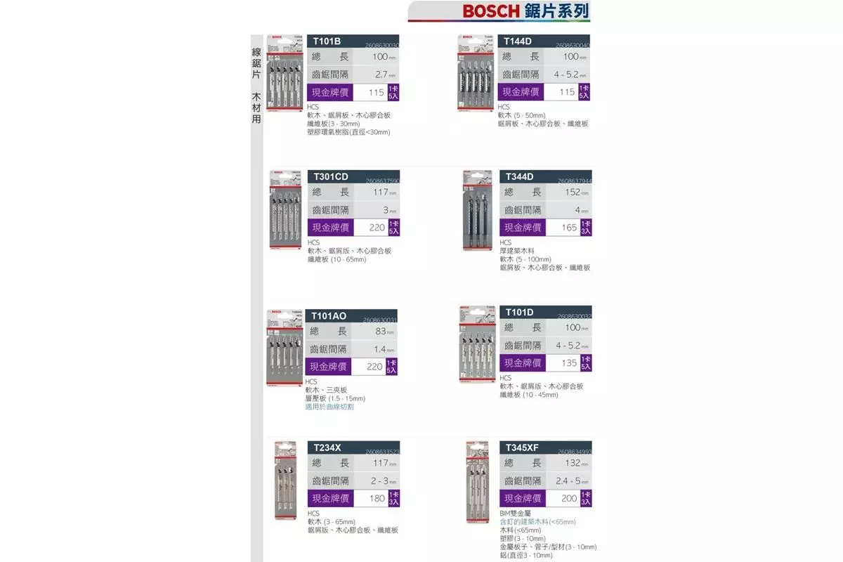 🔹BOSCH鋸片系列:我們與國際知名品牌BOSCH合作,提供多種鋸片,無論是木材、金屬還是其他材料,都能輕鬆應對。