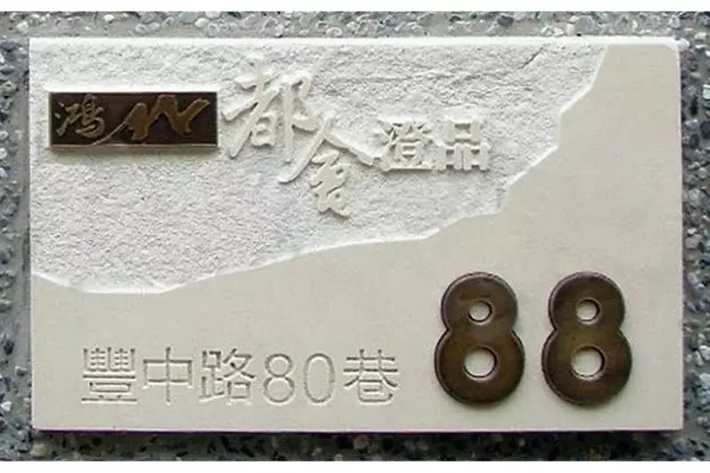 台瓷企業依照設計圖面,先進行金屬合金與石材材料的水刀切割,再透過導圓、拋光與表面處理等工序完成細節修整。最後將不同材質組合成完整門牌作品。