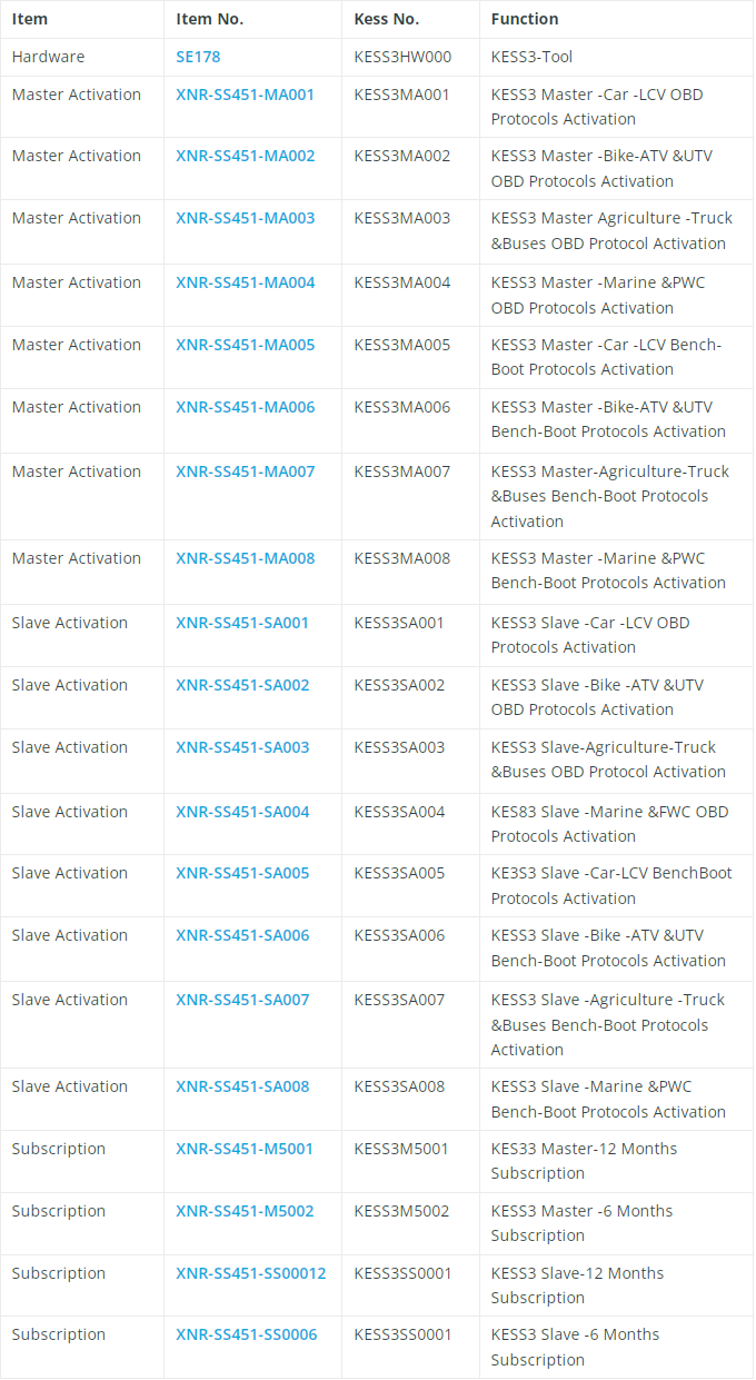2.這只是韌體KESS V3,不含軟體,請根據您的需求購買上述KESS3軟體許可證。 (軟體有2個版本,主版和從版,您可以選擇軟體版本購買)