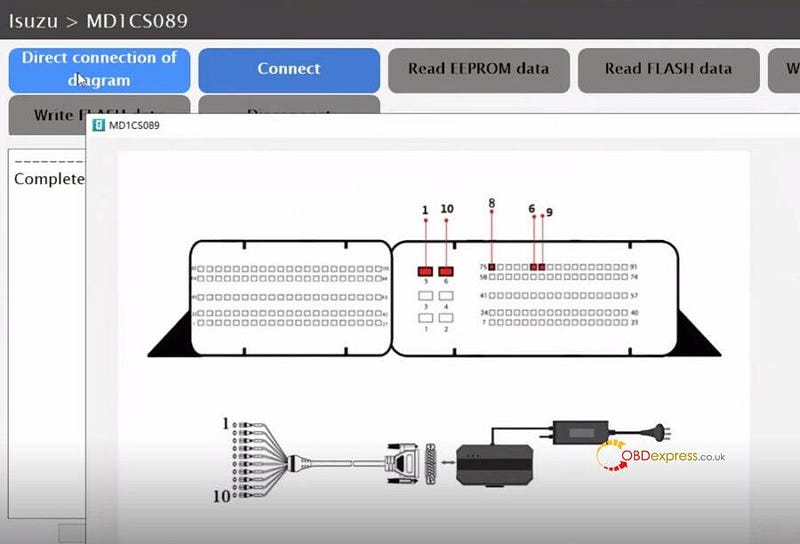 依照X-Prog3 PC Adapter PC軟體中的示意圖連接Launch X-Prog3 PC Adapter和ISUZU ECU,然後將PC Adapter正確連接到X431 X-Prog3鑰匙編程器和計算機