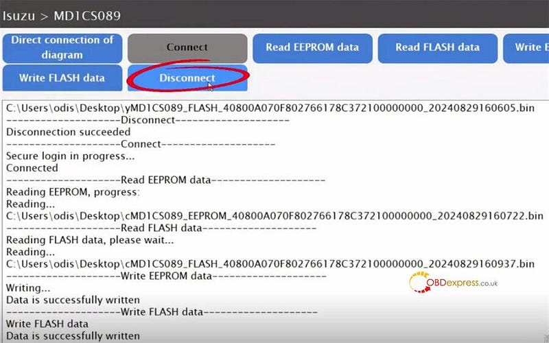 最後將原五十鈴MD1CS089 ECU資料寫入新ECU