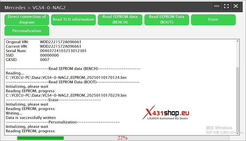 10.最後,再次讀取TCU資訊以確保ECU已被重設。然後,將其安裝在車輛上進行編程和編碼。