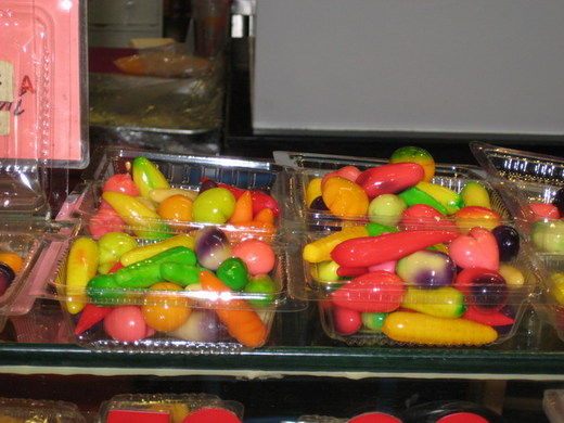 The picture was taken in a department store, Bankok: colorful candy made by green bean.