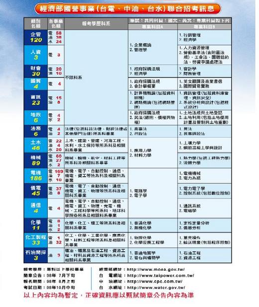 98年經濟部國營事業聯合招考資訊
