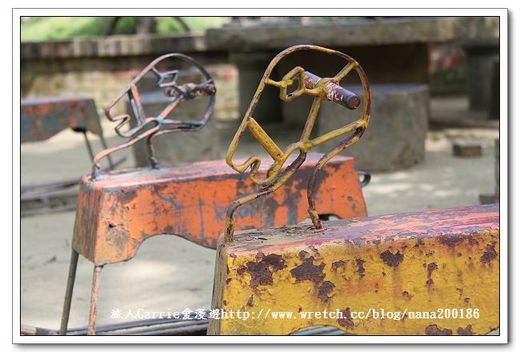 〔椰園〕古早木門及以牛車、農具零件做成的個性桌椅、阿嬤的紅眠床梳妝台、人力車……,透過幾乎被遺忘的農村古文物再現,讓民眾彷彿置身在四、五○年代的台灣農村。Carrie算是個台北俗,〔頂菜園鄉土館〕裡有許多外面看不到的東西,具有鄉村生活味道的景觀,勾起了所有人的童年記憶,若是想要追尋台灣農村的往日情懷或是想體驗台灣的古早味,歡迎到此地走走。