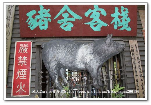 來看看〔頂菜園鄉土館〕裡園主陳明惠先生最經典的創意~「豬舍客棧」,靈活將最「臭」豬舍變成最「香」的美食屋,老舊豬舍經過改造變成了「豬舍客棧」,新舊交錯融合的時空展現,訴說著跨時代的板頭故事。改造豬舍餐廳裡負責餐點工作的是陳太太,她是個鋼琴老師,這裡提供鄉土套餐,桌椅皆是手工打造,還有運用古早腳踏縫紉機的底座當桌座,菜單印製在小黑豬的卡片上,相當可愛逗趣,別漏掉欣賞天花板,上頭可是有個古早大尿桶, Carrie小時候曾經在嘉義縣番路鄉外婆家中使用過這款古早大尿桶喔!