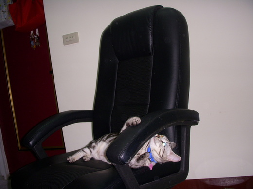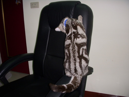 但萬萬沒想到miu miu也很愛用它來做各式的活動,比如說 睡覺/登高/遊戲,我本想有錢幫怹添個"貓跳台"但這玩意兒佔空間又不便宜,我一直沒敗下去,一切都要謝謝總統椅為我二帶來生活的便利/樂趣!