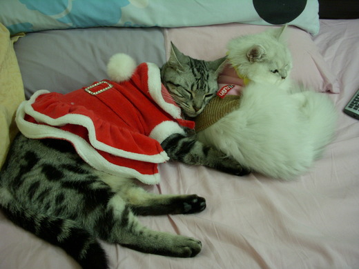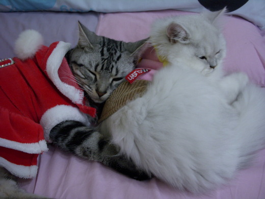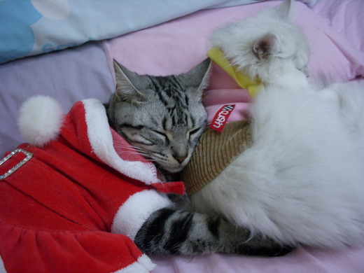 冬天大家都想包著棉被..包著毛毯縮在床上...對miu miu 來說..球球最大的用處..除了讓她追逐"咬閙"外..就是她媲美羽絨般的長澎毛..還真是溫暖呀~~