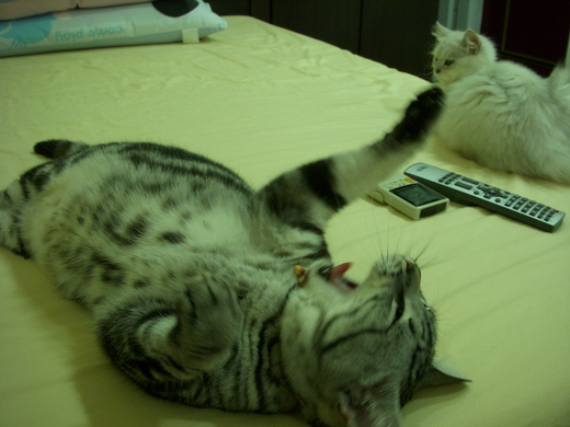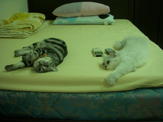 這一段一定要用代表清新空氣的藍色..來書寫!! 我的小天地裡,充滿了貓毛這完全要謝謝我家這二隻不事生產的喵兒們,雖然我家老母履次建議我"賣掉"她們,因貓毛吸欠小心肺部受損,但我要當個有責任的好主人,要負起全責,不能拋棄她們才是。