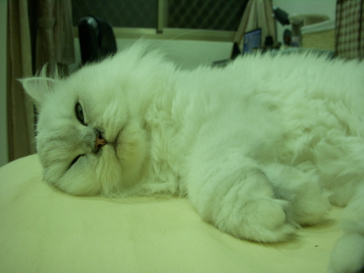 她現在毛又長齊長的很濃密到"電火球"都羨慕她來了~她又變氣質款了,剪短時還真是好笑,我想她心裡很干這件事,但每天頸部都小打結,需每天給她小梳理一下,貓咪的毛都好細軟哦..真希望我頭髮跟她們一般的柔軟!