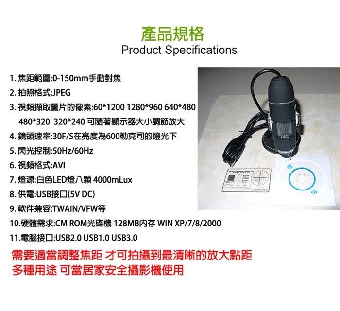 - ◎採用專業顯微鏡頭,顯示效果清晰真實