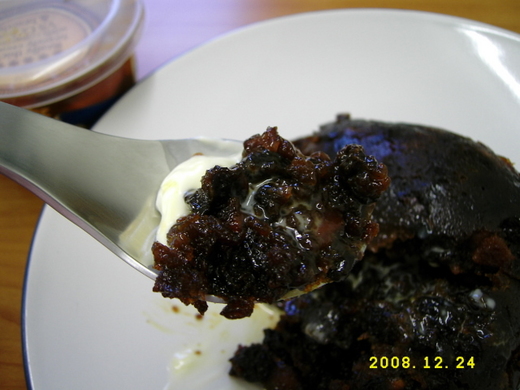 接下來,從聖誕夜起就連續兩天不營業,於是,我也來跟英國人湊個熱鬧「辦年貨」,儲存三天份的糧食。之前嚐過了頭號聖誕應景食物 mince pies( 包有蔓越莓、葡萄乾等各種苺果的甜餡餅 ) ,這次買了讓我好奇很久的 christmas pudding 外加白蘭地奶油醬,超濃郁的酒味連一向愛吃醉雞的我都有點吃不消。有些事物,縱然絕不會想再經歷第二次,一輩子一定要體驗個這麼一回, christmas pudding 就是其中一件。 Haggis 搞不好會是另外一件。