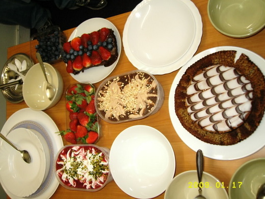 我貢獻了一個舖滿草莓和藍莓的巧克力蛋糕