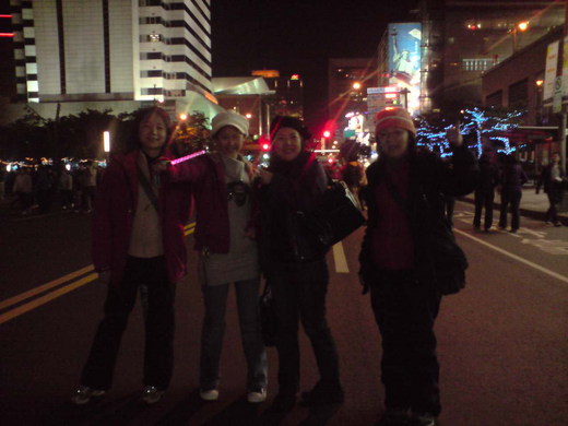 2009年的最後一夜,101周邊人聲鼎沸,在交通管制後,聚集的人也越來越多,新光三越周邊的商家和攤販有秩序的提供大家熱食,很多人很早就看好位置就地而坐,一同感受跨年夜的興奮與期待。
