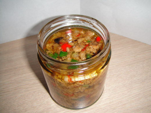 自家做的豚肉辣醬吃法還真多,直接當配菜食用、拌飯拌麵、搭配燙青菜、拌炒烹調都好吃,聽說好友安娜拿了豚肉辣醬試做煎蛋,寶貝女兒吃了猛誇讚。感謝我娘的好廚藝,讓家人每天都品嘗到不同的料理,難怪朋友都愛到家裡作客。