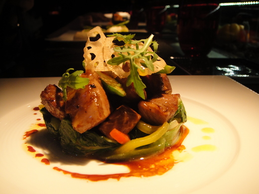 前菜點的有『生食紅魽及鲑魚拌佐香料油封檸檬』、『拌炒地中海式章魚』。時蔬鮮甜,紅魽及鲑魚入口嫩滑,柔中帶Q;章魚料多,肉質緊緻,擺盤就讓人垂涎欲滴。