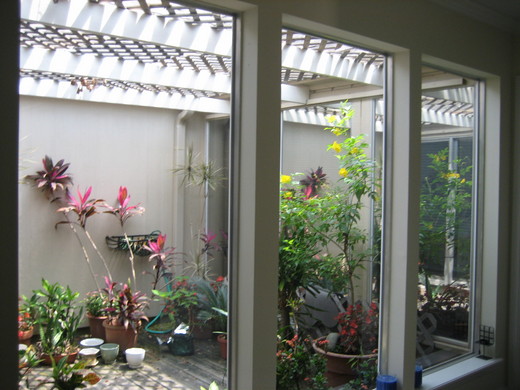 家中有一處天井花園,可以看到屋外一角藍天;下雨時,雨聲滴答更添詩意!當初看上這房子,就是喜歡它獨特的設計,現在已成為貓貓們放風的遊樂場!天井花園就像心中的一扇窗,打開它,憂愁鬱悶煙消雲散,沉重的心情偶而也能出現彩虹!