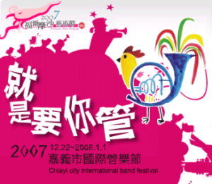 2007嘉義市國際管樂節,上午盛大展開,萬人踩街創意遊行首先登場,立即將這場國內管樂界的嘉年華會,帶入第一波高潮.近百支管樂團隊和創意踩街團體,呈現各種文化.生態和地方特的遊行隊伍,擠爆嘉義市中山路,熱力十足管樂風情和魅力,近距離讓民眾感受,管也管不住.