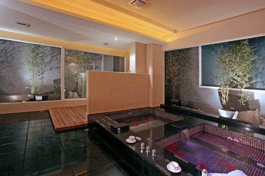 在超大的浴缸內泡湯、喝茶、閒聊兼鬼混一整晚,
