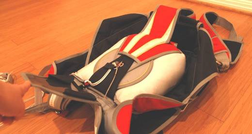 大部份跳傘活動的時間裡, 傘包的重量都在肩上, 所以適當的頸/肩尺寸會讓傘包揹起來舒適些, 必竟重可達35磅, 輕也有20磅的傘包要揹在肩上30分鐘可不是什麼輕鬆的事. 上半身長度和腰/胯下尺寸與腿帶鬆緊息息相關, 腿帶太緊, 只是穿戴傘包上比較不方便而以, 但如果太鬆, 腿帶可能會在開傘時把大腿骨給折斷的.