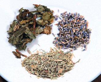 1.依序放入薰衣草、檸檬草和薄荷葉。