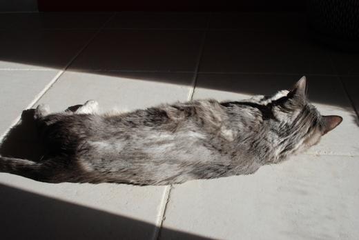不過, 我想我失手了, 而且失手的嚴重到(雖然我已經回來六天, 還可以怪時差嗎?)連我都覺得很對不起他. 加上喵在剪毛的時候也到處動來動去, 實在不太好剪, 還好他到是沒什麼掙扎, 除了一直躺下來, 而且都只是躺一邊(所以右邊剪的比較多, 左邊怎麼也剪不太到).